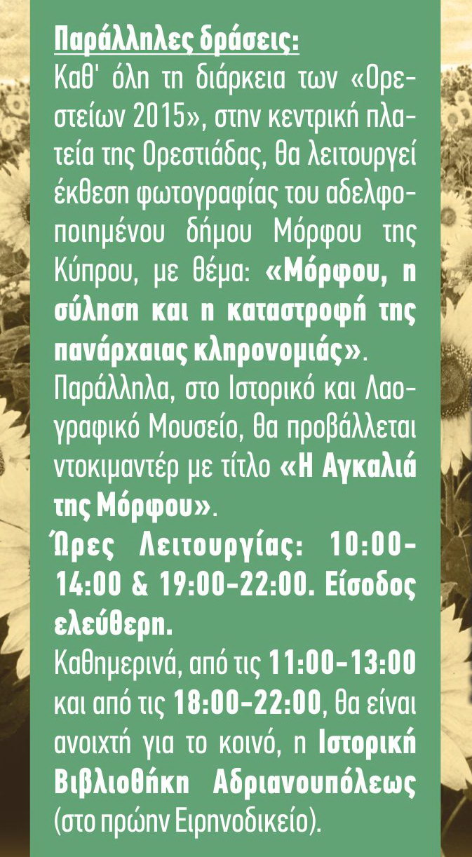 Δείτε αναλυτικά το πρόγραμμα των εκδηλώσεων "Ορέστεια 2015":