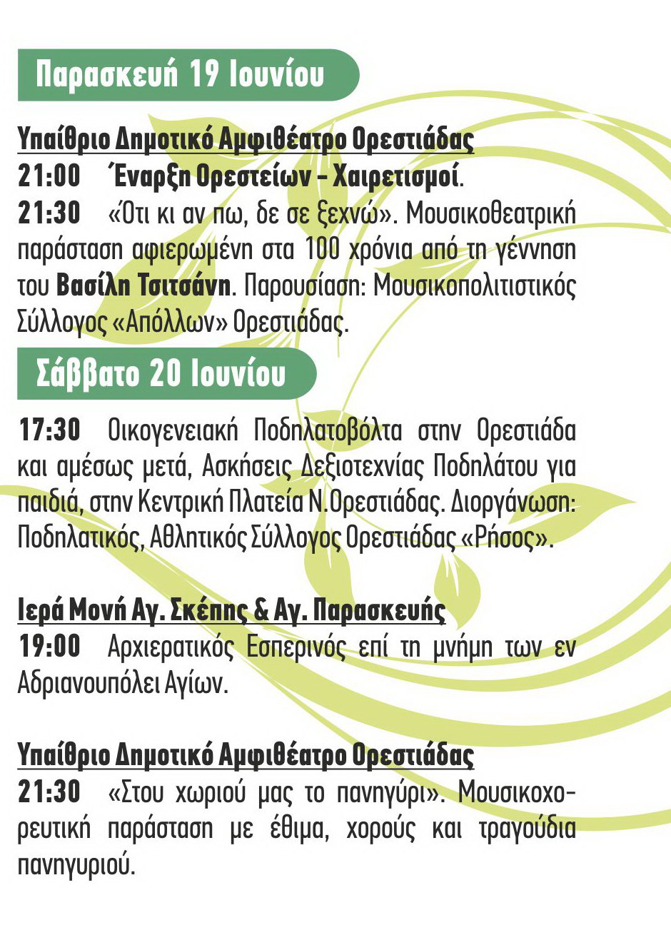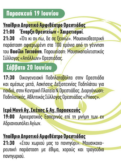 Η Νέα Ορεστιάδα γιορτάζει φέτος την 92η επέτειο ίδρυσής της και ο Δήμος Ορεστιάδας διοργανώνει τις εκδηλώσεις "Ορέστεια 2015" από τις 19 έως τις 21 Ιουνίου. Ο Δήμος Ορεστιάδας και η Δημοτική Κοινωφελής Επιχείρηση Πολιτιστικής Ανάπτυξης Ορεστιάδας σας προσκαλούν στις εκδηλώσεις Τιμής και Μνήμης για την συμπλήρωση 92 χρόνων από την ίδρυση της Νέας Ορεστιάδας.
