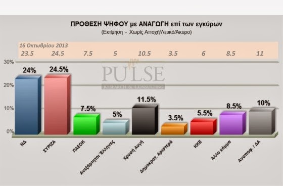 Με μια δημοσκόπηση της Pulse RC κυκλοφορεί αύριο η εφημερίδα «Το Ποντίκι», στην οποία ο ΣΥΡΙΖΑ φαίνεται ότι διατηρεί ένα μικρό προβάδισμα έναντι της Νέας Δημοκρατίας.